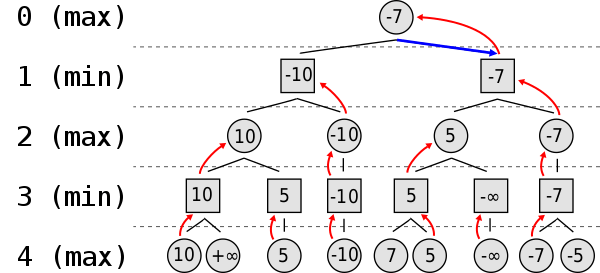MinMax algorithm diagram by Nuno Nogueira (Nmnogueira), retrieved from Wikipedia article on MiniMax algorithm, shared under CC BY-SA 2.5 license (source)